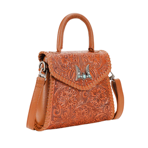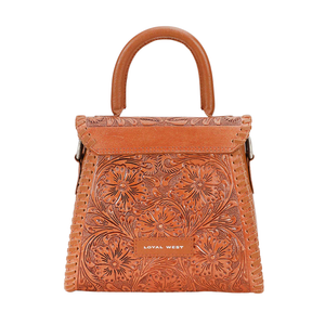 Loyal West Leon Mini Handle Purse - Brown Hand Tooled Leather