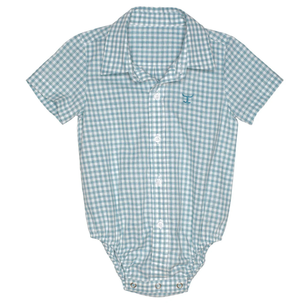 Just Country Infant Frankie Short Sleeve Jumpsuit - Dusty Turquoise Small Check
