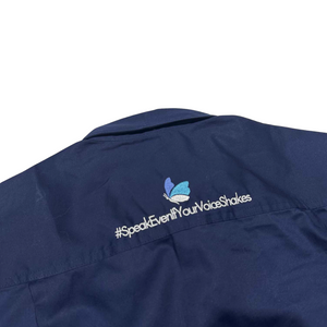 #SpeakEvenIfYourVoiceShakes and butterfly embroidered on the back