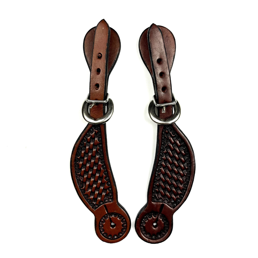 Ezy Ride Youth Spur strap - Basket Stamped Dark Tan